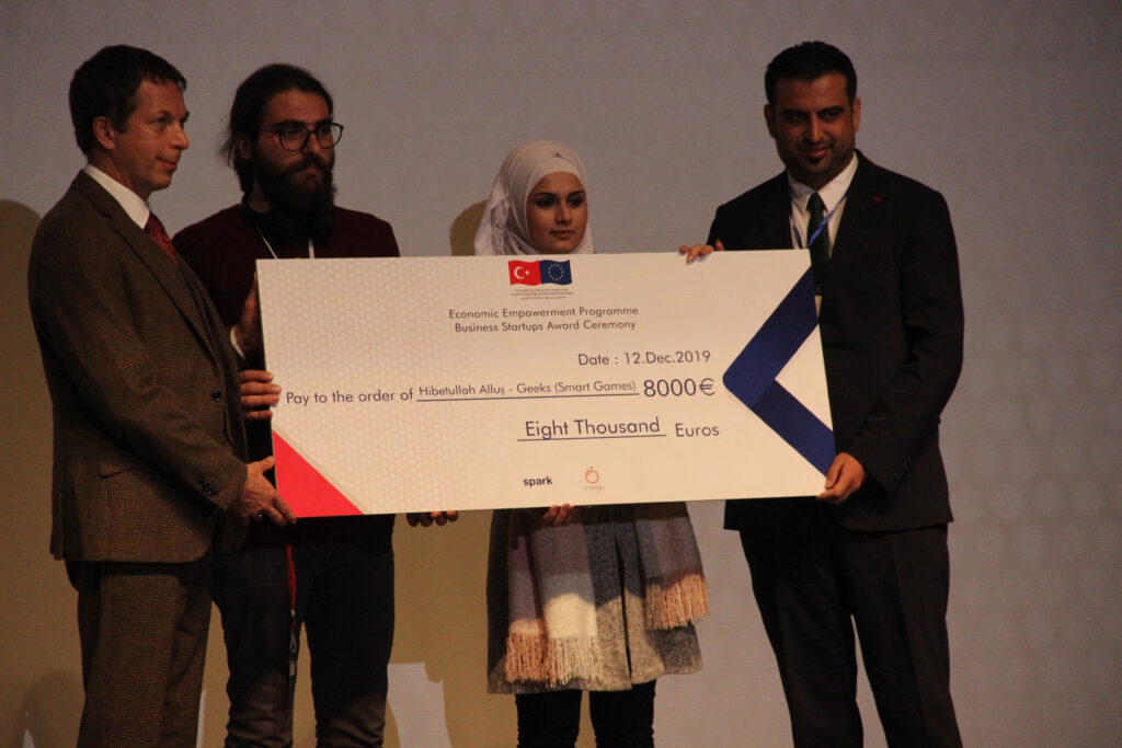 From over 120 applications, 32 new startup companies by young Syrian and Turkish entrepreneurs were awarded with financial startup prizes last week. Alongside our local partner organisation, Orange, and with support from the European Union, through the EU Regional Trust Fund, in response to the Syrian crisis, the ‘MADAD’ fund, we have been training, coaching and boosting the businesses to become viable and create employment opportunities. Each of the 32 new companies received €8000 in seed funding after pitching onstage and showcasing their prototypes on presentation tables.