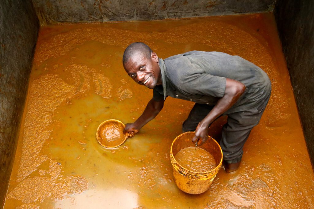 Coming from a region abundant in palm trees, David grew up observing his community use heavy, manual grinding machines to painstakingly extract the oil from palm nuts. During one of his travels further upcountry, he saw a modern grinding machine and was inspired. To raise sufficient funds to purchase such a machine, he partnered with Emmanuel and they created the Mutambara oil mill.